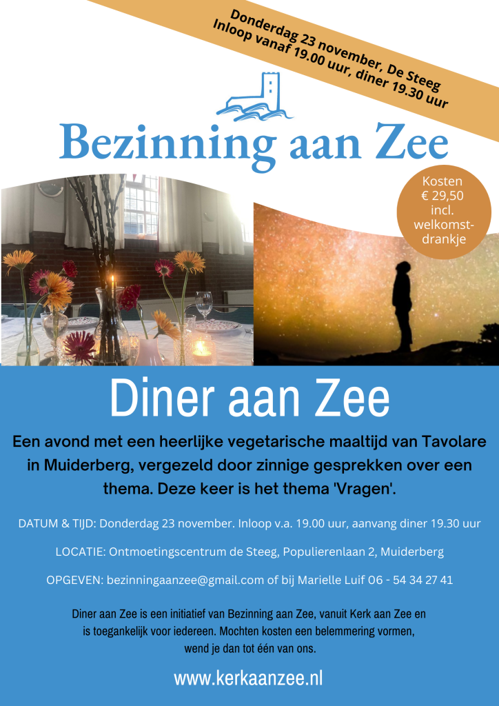 Opgeven via bezinningaanzee@gmail.com of bij Marielle Luif : 06 – 54 34 27 41.